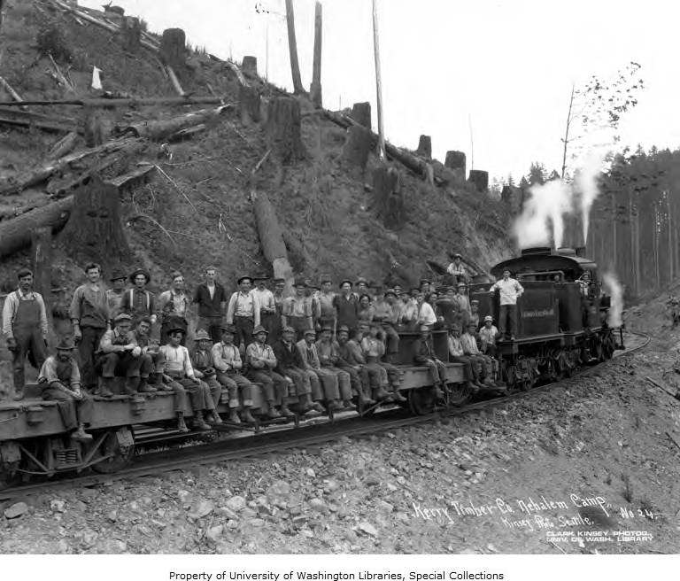 near Aberdeen, Washington circa 1920 Built 03-1907 - Std. gauge - 50 tons - 2 trucks - Class B 903d Photo Credit: Clark Kinsey Collection @ University of Washington |