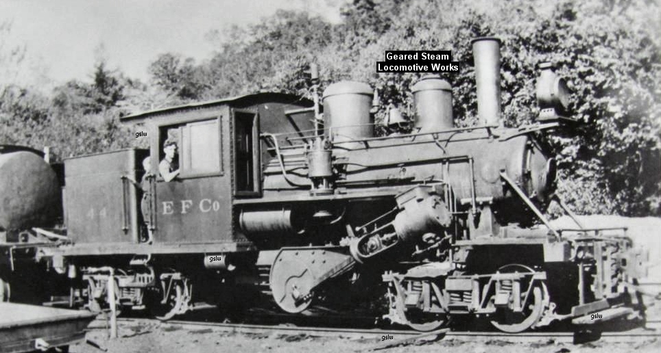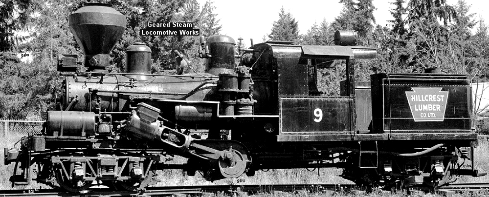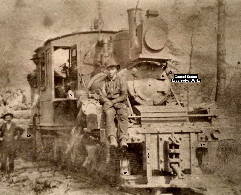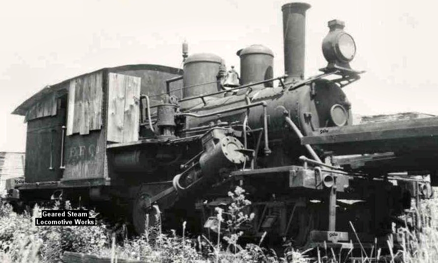 189 Built 07-1899 - Std. gauge - 35 tons - 2 trucks - Class B 903d The locomotive operated near Shelton, Washington The photo is from the Washington State Archives ~ John T. Labbe Collection ~ ID = AR255-114-0-1_L-1370. Note the corrugated sheet metal under the cylinder to keep oil dripping from the cylinder area off the wheels. |