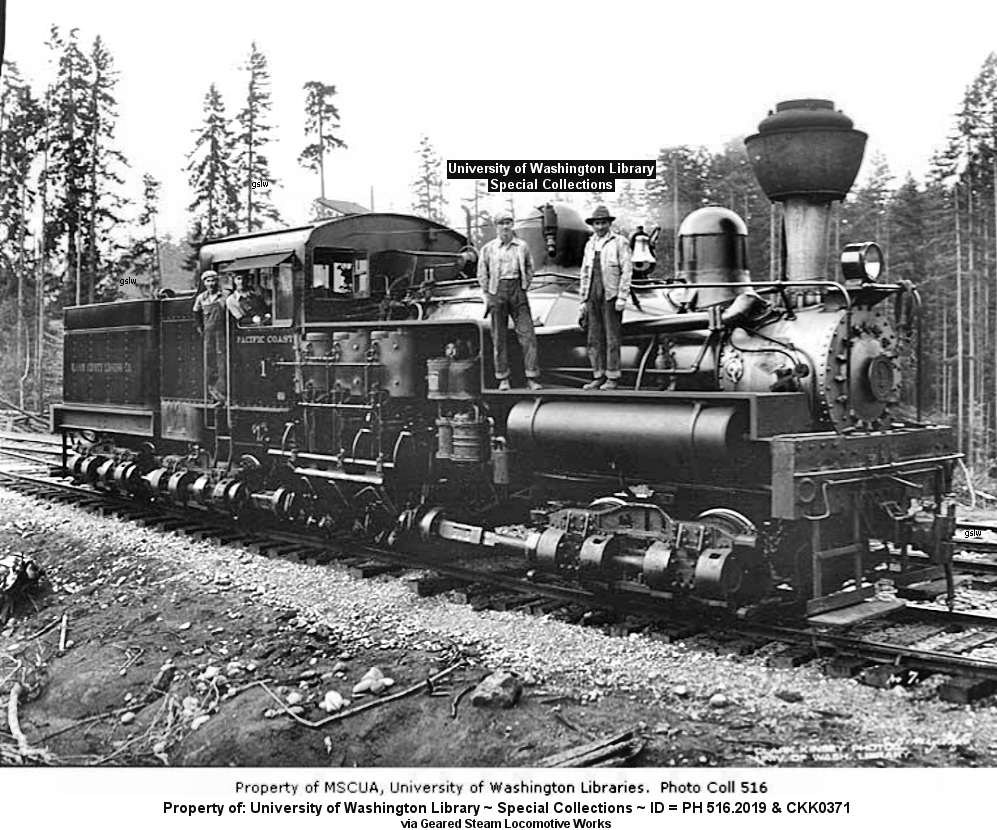 - Menzies Bay, British Columbia, Canada Built 10/06/1927 - Std. gauge - 13" x 15" - 36" drivers - 77 ½ tons - 3 trucks - "Pacific Coast" model |